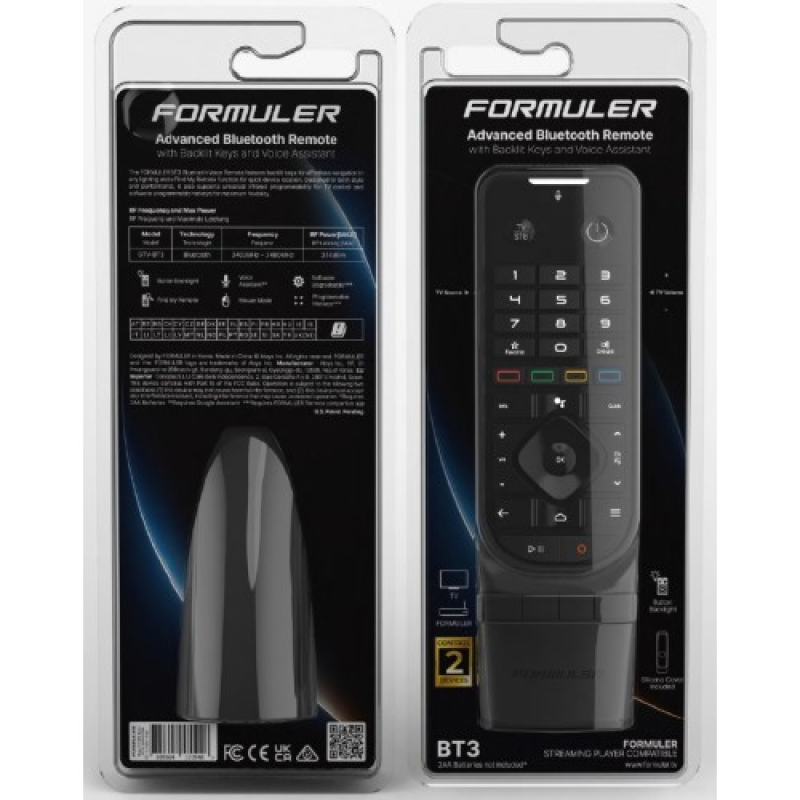 The Formuler GTV‑BT3 is the latest generation Bluetooth Voice Remote designed for Formuler devices, combining smart control, ergonomic comfort, and universal TV compatibility. With backlit keys, voice assistant support, and IR learning, it’s built to simplify your viewing experience — one remote for everything.